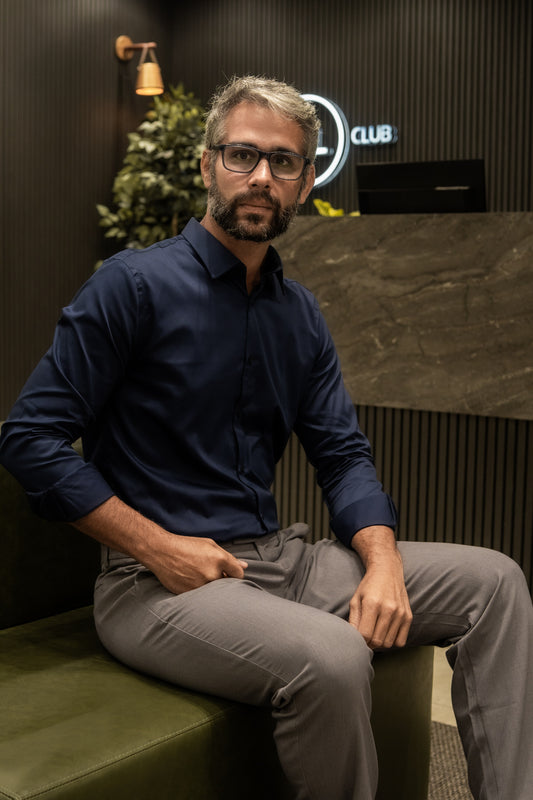 Camisa social manga longa algodão egípcio marinho.